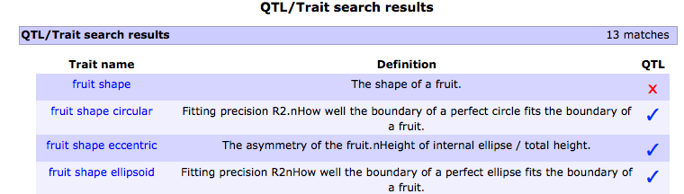 1. Search the database using a trait name. For example, 'fruit shape'.